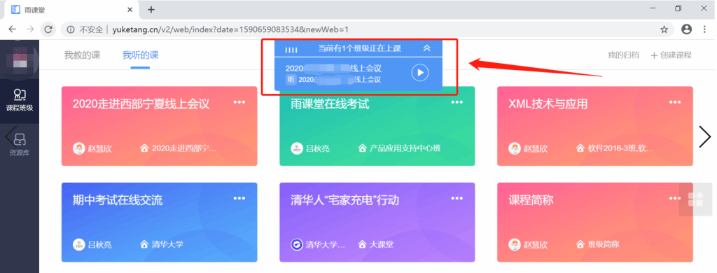 3.2 通过【网页端https://www.yuketang.cn】观看直播(推荐使用Chrome、火狐等浏览器)