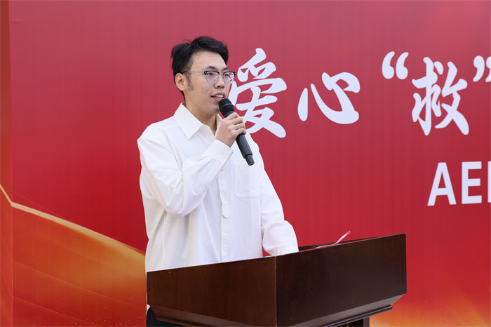 学生代表刘勃阳发表了感言,首先他代表全体同学表达了对捐赠方以及学校、社会各界的感激之情。表示将积极学习应急救护知识和技能,提升自救互救能力,不辜负这份沉甸甸的爱心与期望。