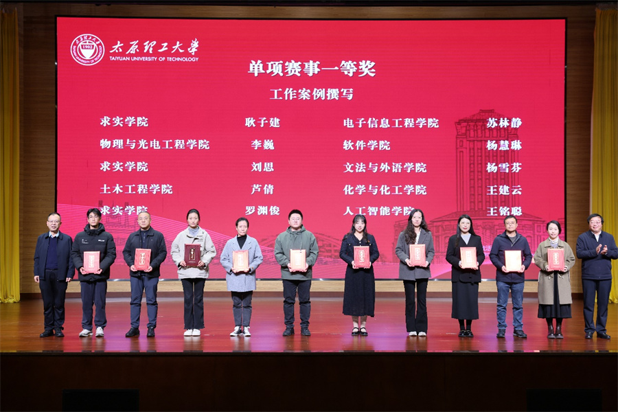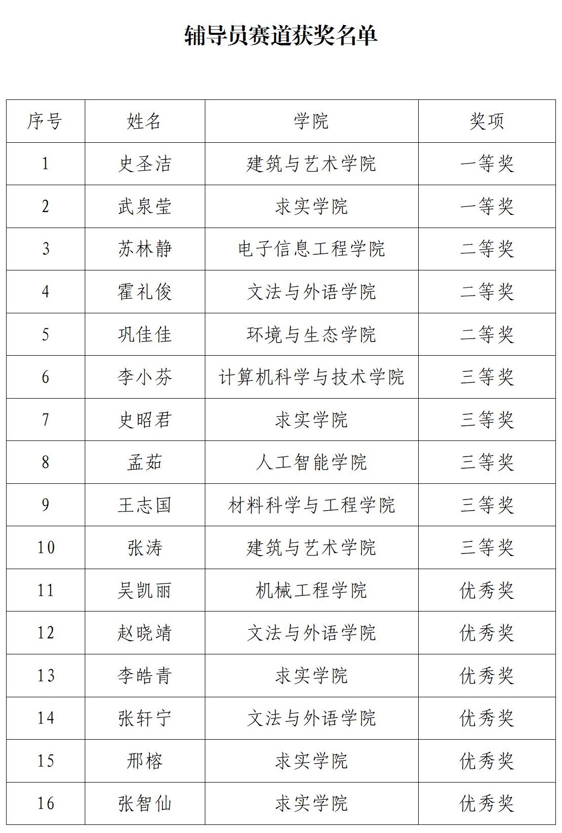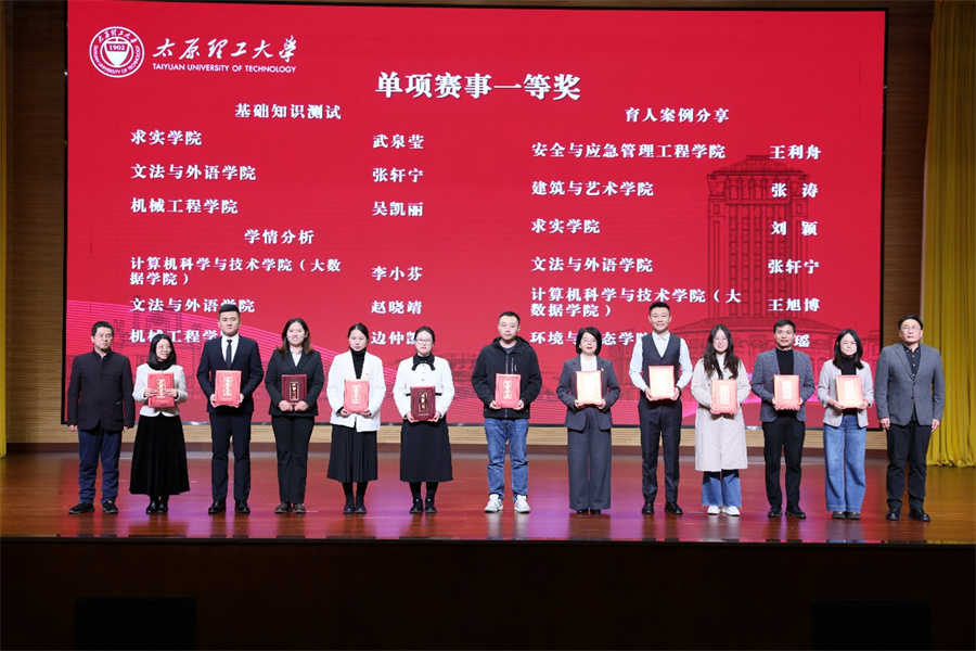 现场为获得大赛一二三等奖和初赛各项目一等奖的选手进行颁奖。专职辅导员赛道中,史圣洁等2人获一等奖、苏林静等3人获二等奖、李小芬等5人获三等奖、吴凯丽等6人获优秀奖。副书记专项赛道中,郭飞等3人获卓越领导力奖,安晓艳等2人获优秀奖。与会领导分别为他们颁发荣誉证书并合影留念。