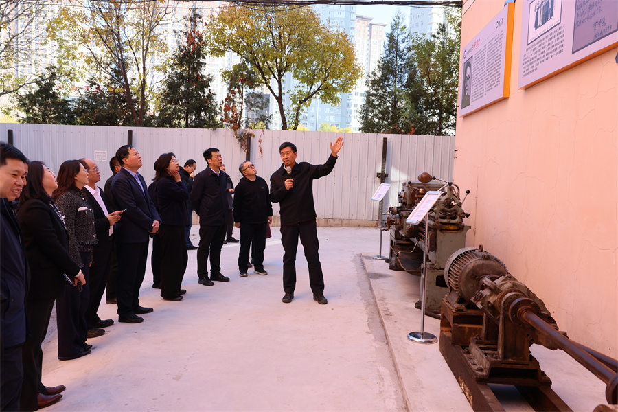 揭牌仪式后,王铁作为主讲人,带领在场领导、嘉宾及师生走进育人基地,现场介绍展陈内容。他首先围绕 10 块主题展板,结合 “生平简介、教学育人、科研成果、成果应用、硕果累累”五个版块,详细讲解朱景梓先生的人生历程与学术贡献;随后又聚焦基地内的8台核心设备,包括1台朱先生指导设计制造的摆动式机械加载锥齿轮试验台架、7台先生使用过的机床(其中上世纪30年代的格里森机床承载着民族工业、抗日烽火、产业内迁、院系合并的时代印记),以及展柜中1978参加全国科学大会与邓小平、叶剑英、李先念等党和国家领导人的珍贵合影原件,收录朱先生生平事迹的《中国科学家机械科学辞典》、机械科学研究院副院长雷天觉院士纪念先生的亲笔题赠实物,朱先生1954年主持设计的全球第一台齿数差为1的双曲柄式渐开线少齿差行星齿轮减速器、圆弧齿轮等展品,通过实物背后的故事,生动展现朱先生“瞄准需求、敢为人先”的科研执着,让在场人员直观感受我国机械传动技术的发展历程。