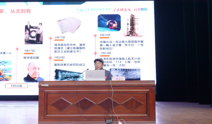 赵金才教授围绕“中国航天的昨天、今天、明天”主题开讲,通过“白手起家,从无到有”“筚路蓝缕,从弱到强”“从航天大国到航天强国”三个板块梳理我国航天发展脉络,并结合“天宫“变形记”“运载火箭”“嫦娥探月”的内容科普航空航天知识,阐释了载人航天工程与深空探测的重要意义,最后以“今天,是各位了解航天的起点;明天,即将是星辰大海的征程!”作总结,向在场同学寄予了航天探索与未来成长的期望。