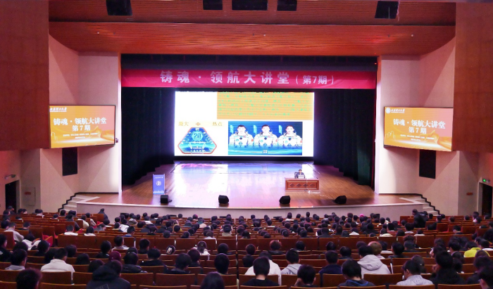 为深入学习贯彻党的二十届四中全会精神,贯彻落实习近平总书记关于教育的重要论述,引导青年学生坚定理想信念、厚植家国情怀,11月7日下午,“铸魂·领航”大讲堂(第7期)在明向校区明向会堂开讲。本期特邀南京航空航天大学讲席教授,中国宇航学会深空探测专业委员会委员,中国城市经济学会理事,同济大学客座教授,中国磁浮交通领域科技咨询专家,中国中西医结合学会化学灾害救灾指挥专委会委员赵金才教授作题为《中国航天的昨天、今天和明天》的专题报告,全校600余名师生聆听报告。
