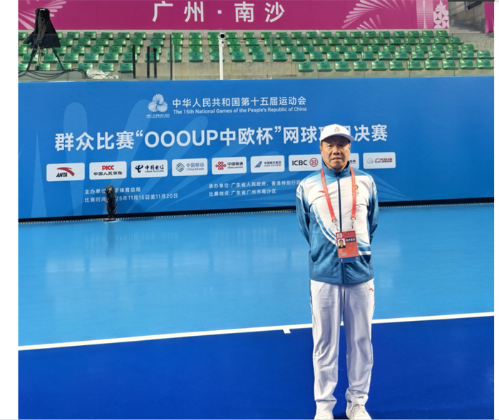 萧凯雁,网球国家级裁判,曾执裁第七届全国城市运动会、第十一届全国运动会、第二十六届世界大学生运动会(深圳)等多项大型赛事,积累了深厚的执裁功底。本届全运会中,他担任群众组网球项目技术官员,专注司线工作,始终秉持“精准判罚、细致服务”的原则,以敏锐的观察力判断每一次底线与边线的落球,用一丝不苟的态度履行司线职责,为群众性网球赛事的安全有序开展提供了坚实保障,其专业表现赢得了组委会与选手的一致好评。