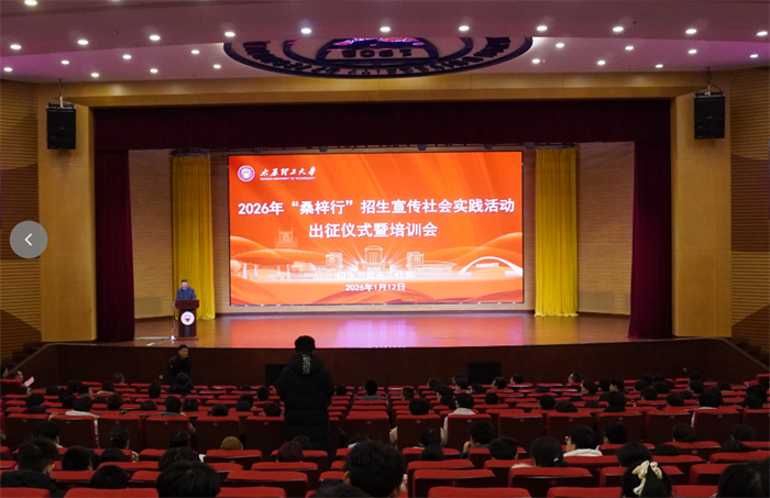1月12日下午,356体育在线官网2026年“桑梓行”寒假招生宣传活动出征仪式在明向校区学生活动中心一层报告厅举行。校党委常委、副校长王志华,招生与就业工作部、校团委、求实(宗复)学院、软件学院相关负责人及志愿者代表参加了出征仪式,仪式由招生与就业工作部负责人主持。会上,往届优秀团队代表软件学院武鑫磊同学、人工智能学院王志民同学分享实践经验。他们结合自身返乡宣传的亲身经历,从前期调研筹备、招生政策解读、沟通技巧运用、...