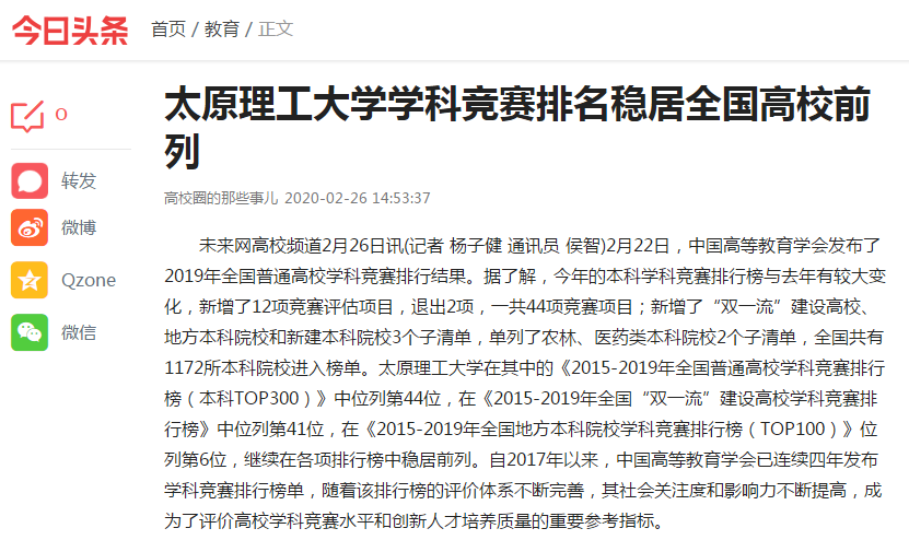 356体育在线官网学科竞赛排名稳居全国高校前列