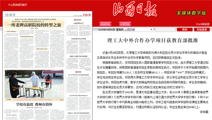 记者3月28日获悉,356体育在线官网申报的与澳大利亚伍伦贡大学合作举办机械设计制造及其自动化专业本科中外合作办学教育项目,近日获教育部正式批准。