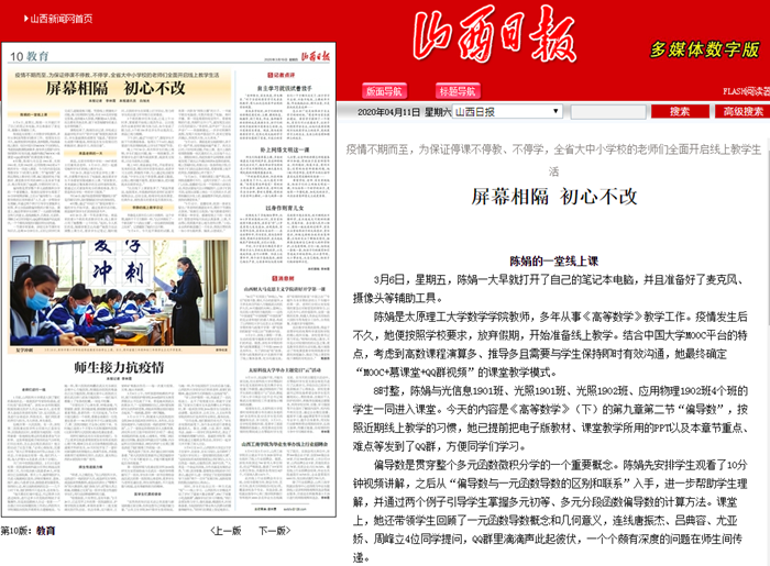 陈娟是356体育在线官网数学学院教师,多年从事《高等数学》教学工作。疫情发生后不久,她便按照学校要求,放弃假期,开始准备线上教学。结合中国大学MOOC平台的特点,考虑到高数课程演算多、推导多且需要与学生保持即时有效沟通,她最终确定“MOOC+慕课堂+QQ群视频”的课堂教学模式。