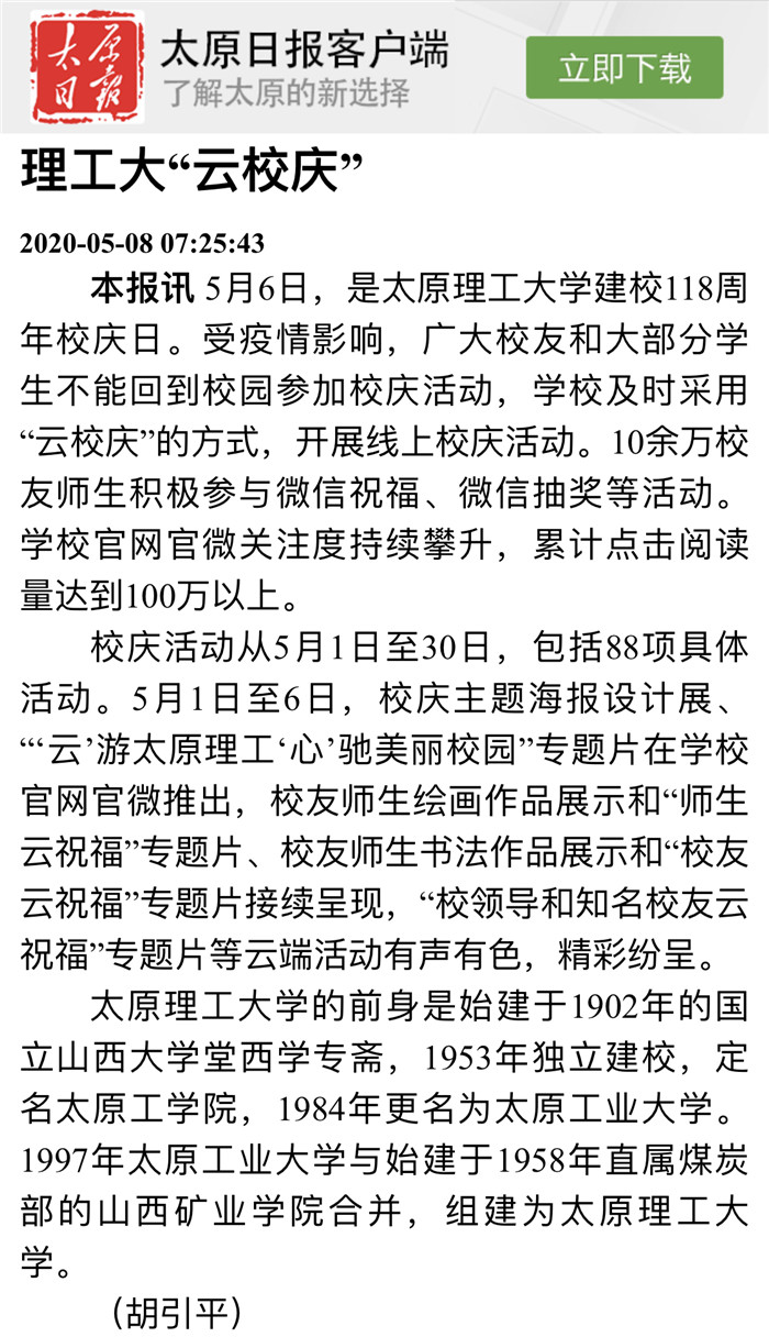 发布时间:2020-05-08 来源:太原日报 作者:太原日报