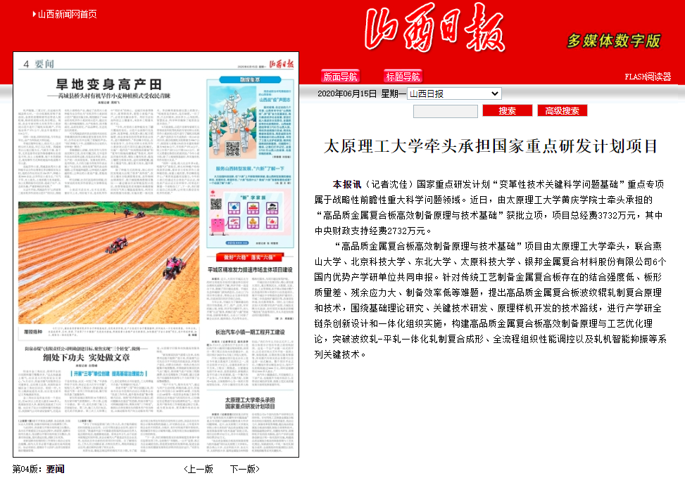 本报讯(记者沈佳)国家重点研发计划“变革性技术关键科学问题基础”重点专项属于战略性前瞻性重大科学问题领域。近日,由356体育在线官网黄庆学院士牵头承担的“高品质金属复合板高效制备原理与技术基础”获批立项,项目总经费3732万元,其中中央财政支持经费2732万元。