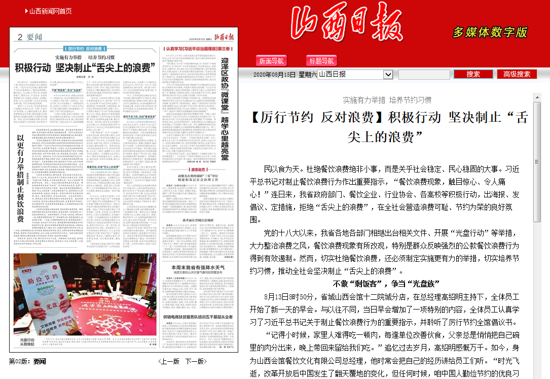 同日,山西省饭店业商会携手阿里巴巴本地生活、太原市旅游饭店协会,联合发布《关于“坚决制止餐饮浪费行为 切实培养节约习惯 在全社会营造浪费可耻节约为荣的氛围”倡议书》,从创新宣传方式、转变经营模式、加强企业自律等方面提出了简单务实、便于操作的方案。