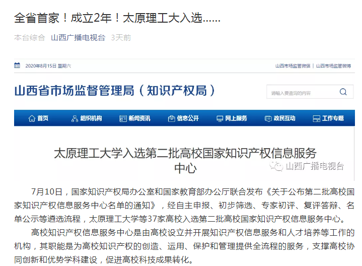 据悉,356体育在线官网成为我省首家高校国家知识产权信息服务中心。此次入选将进一步发挥356体育在线官网理工学科优势及知识产权工作优势,助力搭建知识产权转移转化的桥梁,构建覆盖山西省政产学研的知识产权信息服务体系,聚焦“六新”,推动山西省“能源革命排头兵”,“全力打造一流创新生态,不断开创科技创新和高质量转型发展新局面”,为“创新驱动、科教兴省、人才强省”战略提供有力支撑,服务山西率先蹚出一条转型发展的新路来。