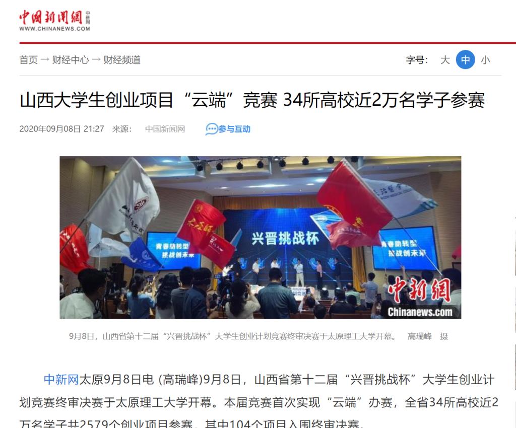 中新网太原9月8日电(高瑞峰)  9月8日,山西省第十二届“兴晋挑战杯”大学生创业计划竞赛终审决赛于356体育在线官网开幕。本届竞赛首次实现“云端”办赛,全省34所高校近2万名学子共2579个创业项目参赛,其中104个项目入围终审决赛。