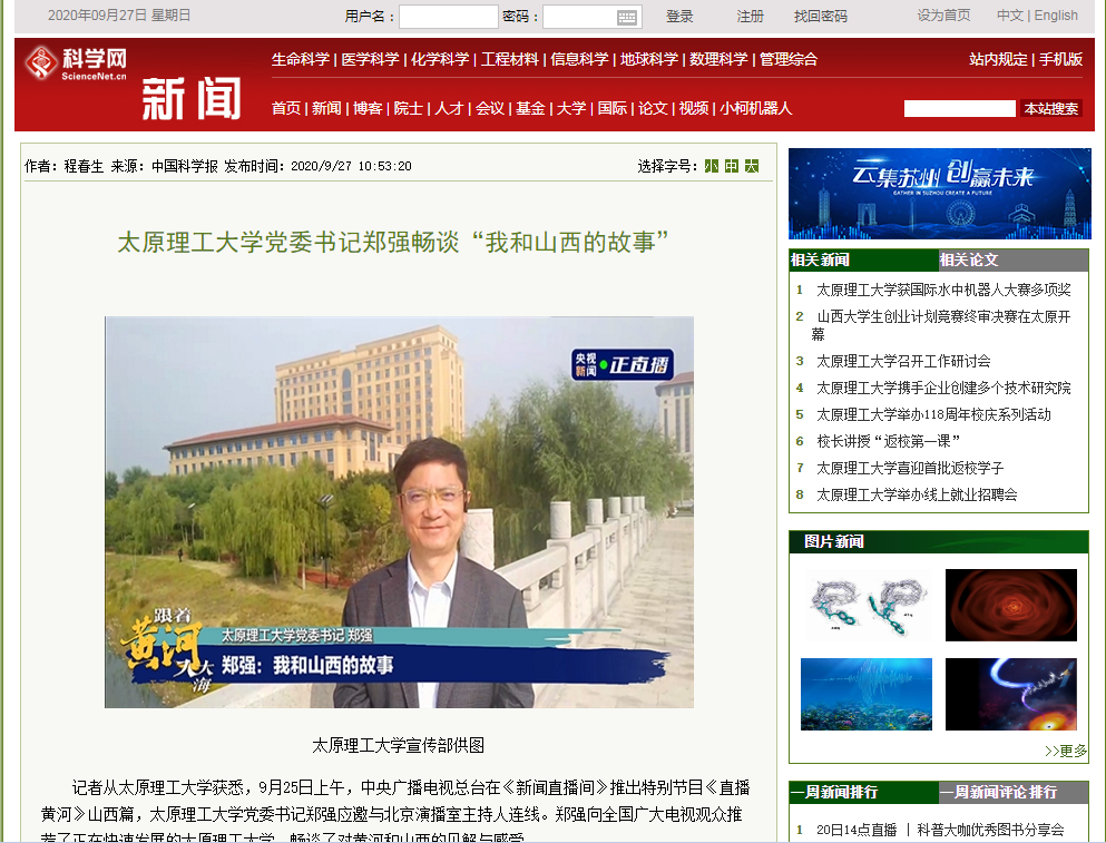 记者从356体育在线官网获悉,9月25日上午,中央广播电视总台在《新闻直播间》推出特别节目《直播黄河》山西篇,356体育在线官网党委书记郑强应邀与北京演播室主持人连线。郑强向全国广大电视观众推荐了正在快速发展的356体育在线官网,畅谈了对黄河和山西的见解与感受。