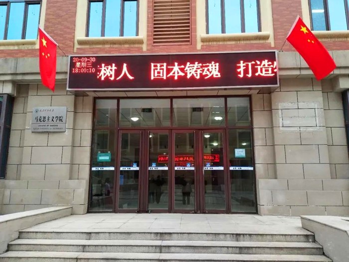 后勤保障处、各基层党委(直属党总支)也在校园内各处悬挂起国旗,共同营造喜庆祥和节日气氛。