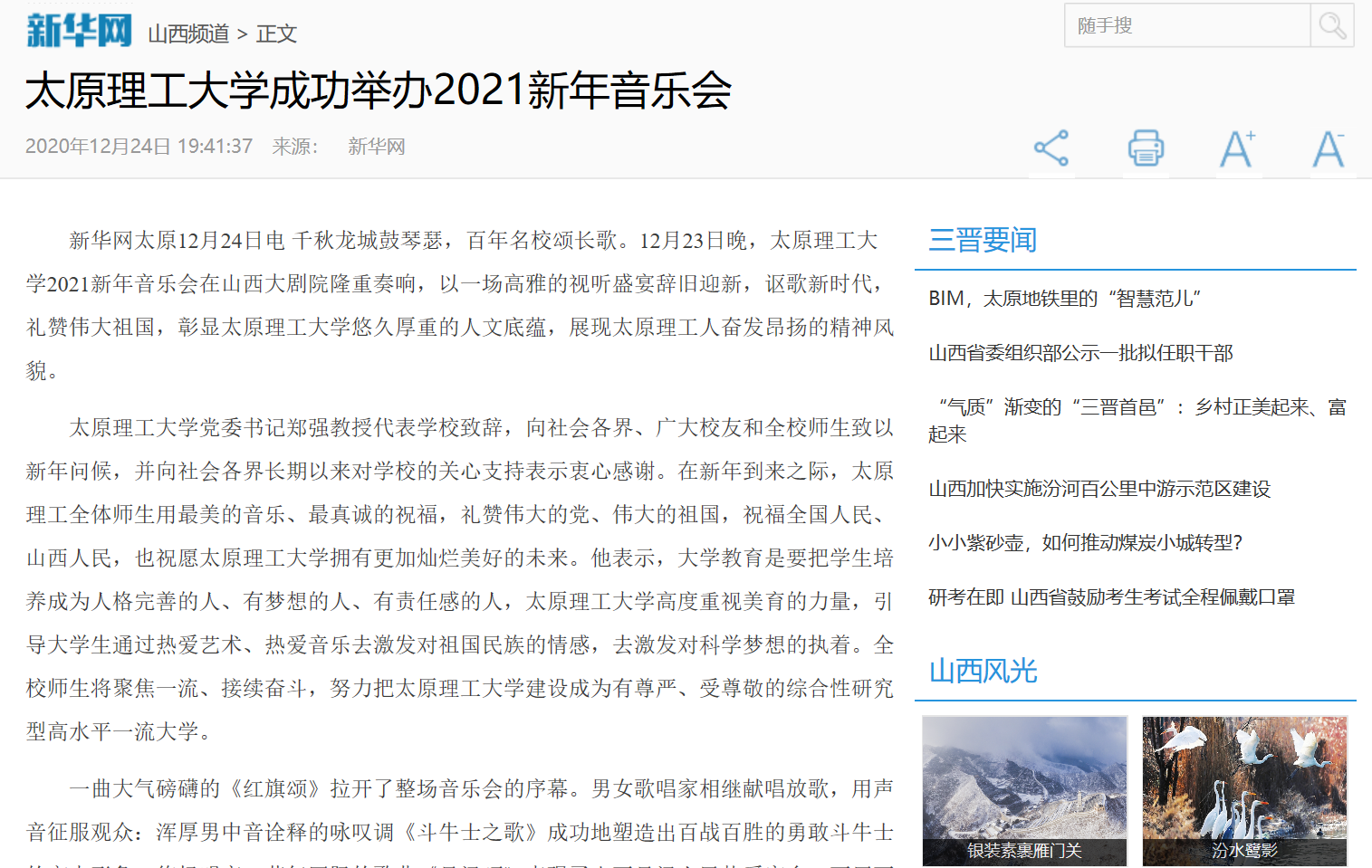新华网太原12月24日电 千秋龙城鼓琴瑟,百年名校颂长歌。12月23日晚,356体育在线官网2021新年音乐会在山西大剧院隆重奏响,以一场高雅的视听盛宴辞旧迎新,讴歌新时代,礼赞伟大祖国,彰显356体育在线官网悠久厚重的人文底蕴,展现太原理工人奋发昂扬的精神风貌。