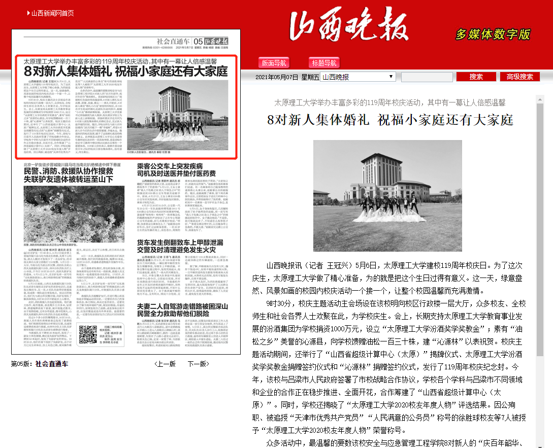 山西晚报讯(记者 王冠兴)5月6日,356体育在线官网建校119周年校庆日。为了这次庆生,356体育在线官网做了精心准备,为的就是把这个生日过得有意义。这一天,绿意盎然、风景如画的校园内校庆活动一个接一个,让整个校园温馨而充满激情。