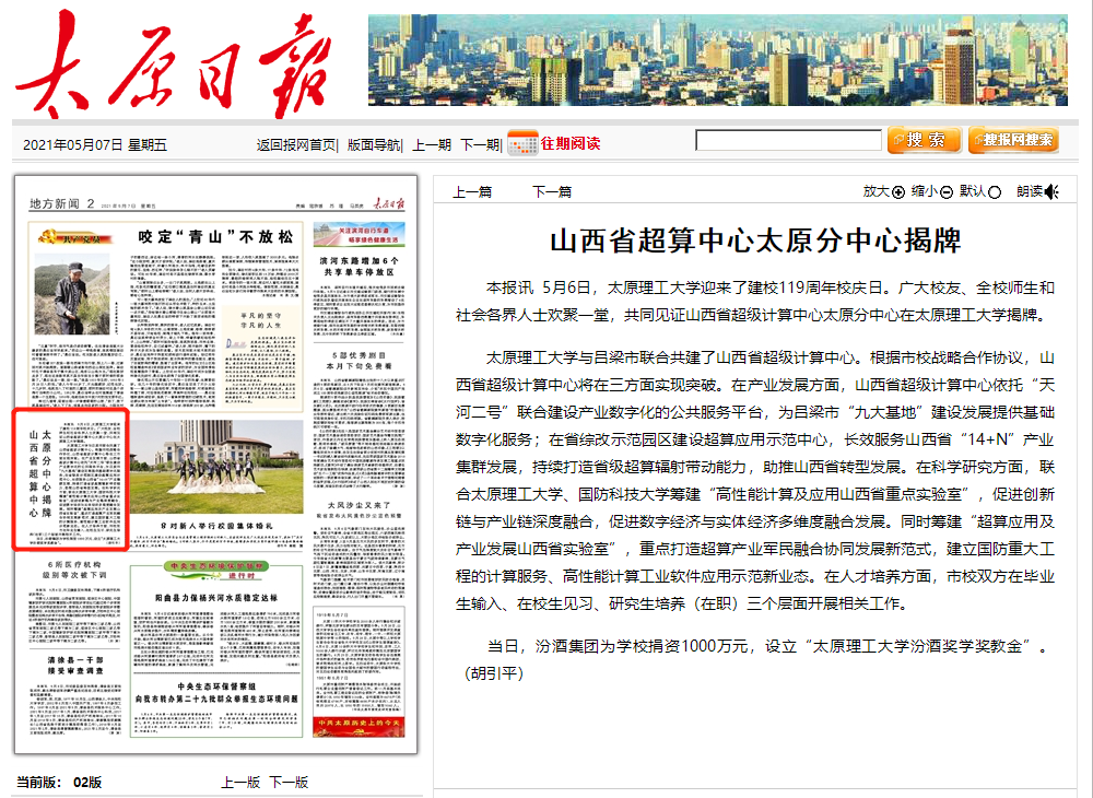 本报讯 5月6日,356体育在线官网迎来了建校119周年校庆日。广大校友、全校师生和社会各界人士欢聚一堂,共同见证山西省超级计算中心太原分中心在356体育在线官网揭牌。