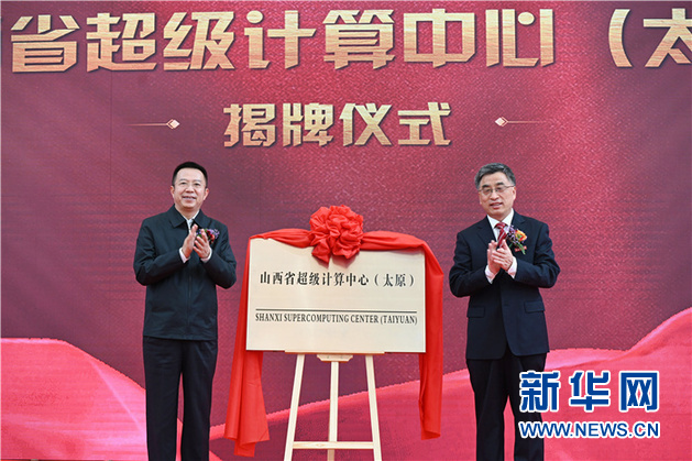 黄庆学(右)与吕梁市市长张广勇共同为山西省超级计算中心(太原)揭牌。新华网 发
