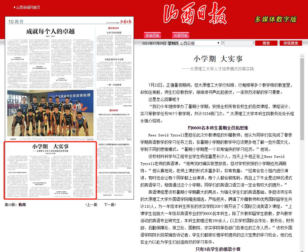 此外,该校暑期小学期还加入了思政元素,比如举办征文比赛,鼓励外教、留学生、本科生用外语讲好太理故事、山西故事;外国语学院还组织全体外籍教师和留学生进行了三晋文化交流学习研讨会,研究生院开设了各类专家讲座、论坛,不少外籍教师被356体育在线官网和山西丰厚的文化底蕴所折服,纷纷在国际社交平台进行了视频、图文分享。