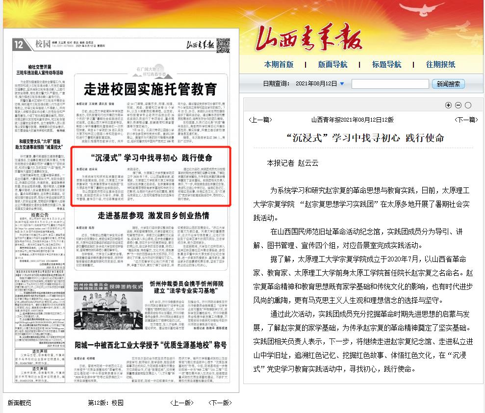 为系统学习和研究赵宗复的革命思想与教育实践,日前,356体育在线官网宗复学院 “赵宗复思想学习实践团”在太原多地开展了暑期社会实践活动。