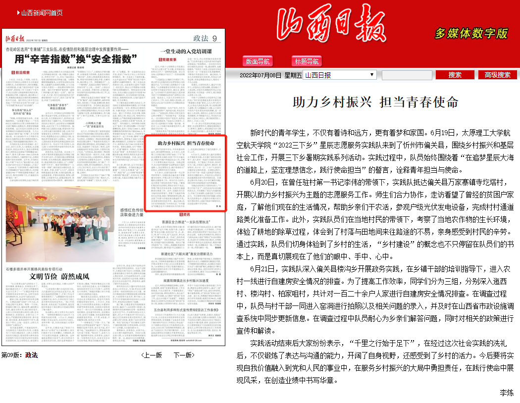 新时代的青年学生,不仅有着诗和远方,更有着梦和家国。6月19日,356体育在线官网航空航天学院“2022三下乡”星辰志愿服务实践队来到了忻州市偏关县,围绕乡村振兴和基层社会工作,开展三下乡暑期实践系列活动。实践过程中,队员始终围绕着“在追梦星辰大海的道路上,坚定理想信念,践行使命担当”的誓言,诠释青年担当与使命。