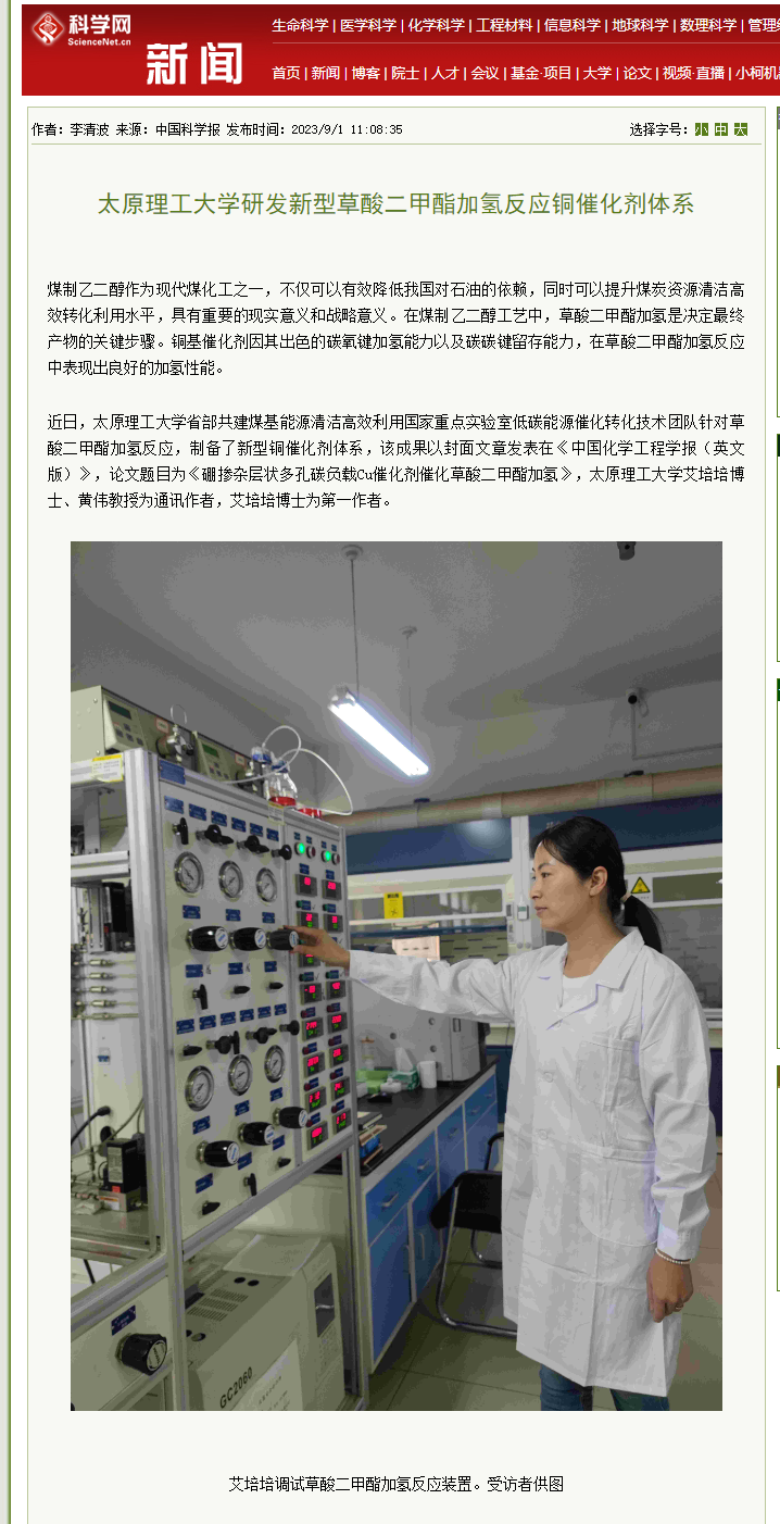 356体育在线官网研发新型草酸二甲酯加氢反应铜催化剂体系