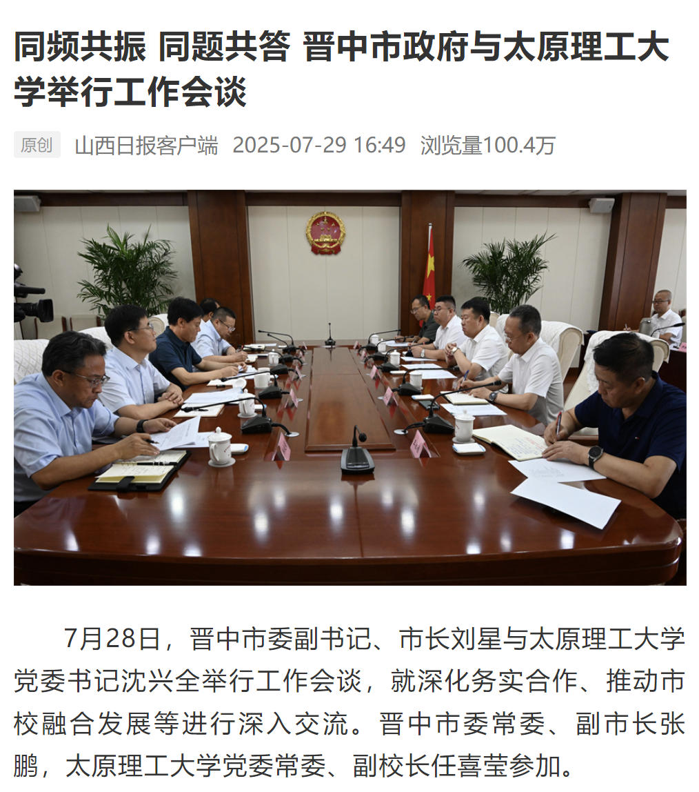同频共振 同题共答 晋中市政府与356体育在线官网举行工作会谈