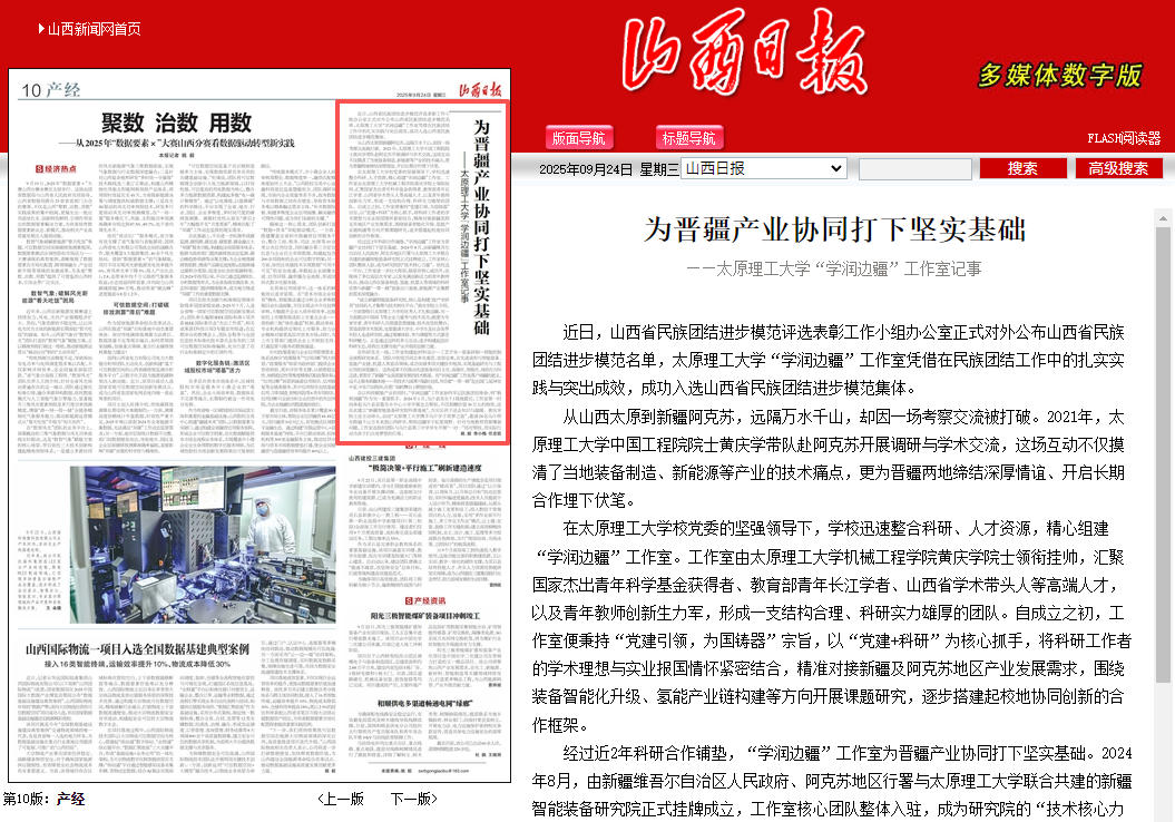 经过近2年科研合作铺垫,“学润边疆”工作室为晋疆产业协同打下坚实基础。2024年8月,由新疆维吾尔自治区人民政府、阿克苏地区行署与356体育在线官网联合共建的新疆智能装备研究院正式挂牌成立,工作室核心团队整体入驻,成为研究院的“技术核心力量”。依托这一平台,工作室进一步壮大阵容,除原有核心成员外,还吸纳了多位高层次专家,以及充满创新活力的青年教师队伍,推动山西在装备制造、氢能、机器人等领域的科研优势与新疆“一带一路”装备出口基地、新能源产业集群的需求深度融合。