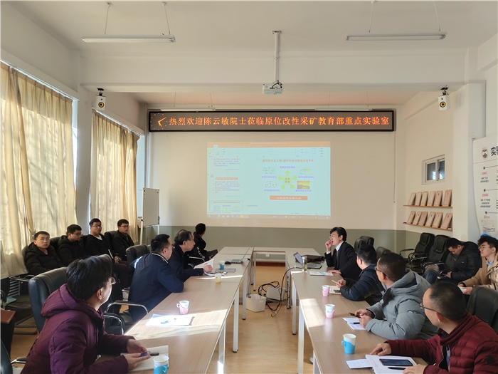 参观过程中,梁卫国教授首先向陈云敏院士介绍了实验室基本情况、最新研究进展及自主研发的大型仪器设备,陈云敏院士对正在进行试验的研究生的测试及仪器改进方面进行了指导。座谈中,双方对碳中和目标下的能源革命与科学采矿之路,能源结构调整过程中科学问题,采矿与环境问题协调发展,传统能源清洁化、多元化、智能化发展等问题进行了充分交流。