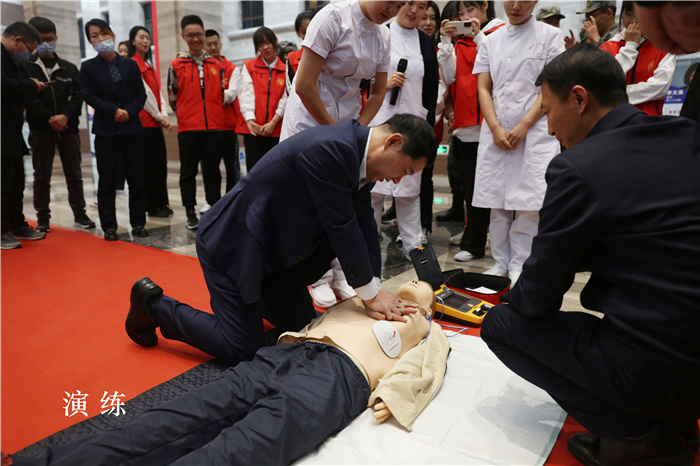 培训演练分三个环节进行。在心肺复苏理论教学环节,来自榆次区人民医院的医护人员为师生代表进行理论培训,认真细致地讲解了心肺复苏的基本流程和步骤,包括判断是否丧失意识、判断有无自主呼吸、进行胸外心脏按压、人工呼吸等环节的具体操作以及AED的使用方法,并耐心解答现场师生的提问。为巩固理论教学成果,在随后进行的心肺复苏现场实践教学环节,医护人员通过对人体模型进行心肺复苏抢救示范操作,对急救姿势、手法及相关要求等作了具体操作演示。“连续30次心脏按压后2次口对口人工呼吸”“胸骨按压要达到5厘米的深度”……在医护人员的指导下,现场师生代表一同轮流进行现场操作,对人体模型实施心肺复苏和人工呼吸模拟练习,从环境评估到胸外按压,从手法要求到时间控制,均严格按照标准进行,大家在互帮互助的氛围中学习了抢救生命的基本技能。应急救援之心肺复苏演练环节,模拟保卫部110巡逻队发现某教职工在校园内突发昏迷,迅速查看情况后实施营救,并上报应急救援指挥部,医疗救援分队和安保救援分队立即前来救援,在大家的不懈努力下,该教职工恢复呼吸,被送往医院继续治疗,应急救援之心肺复苏演练圆满结束。