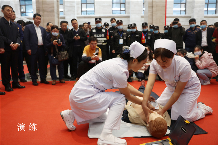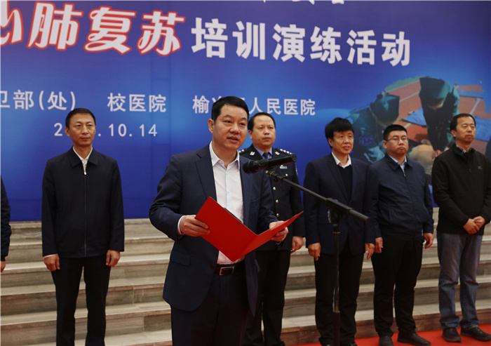 山西省教育厅安稳处处长武振杰、榆次区人民医院副院长牛志斌、晋中市公安局高校分局党委书记、局长王存江、晋中市高校消防救援大队大队长牛旭琼、山西中医药大学保卫部负责人等应邀参加活动。学校相关部门(单位)负责人,安保人员、后勤保障人员、教职工和学生代表等一同参加培训演练。