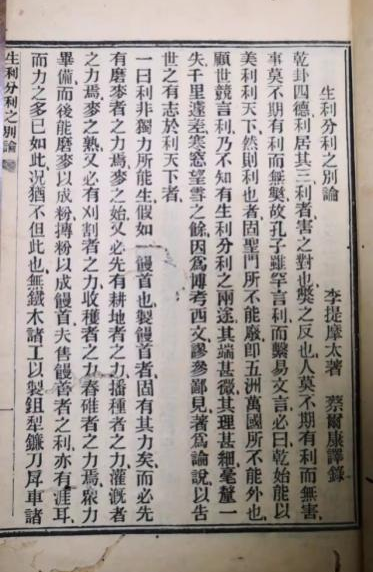 李提摩太著作《生利分利之别》