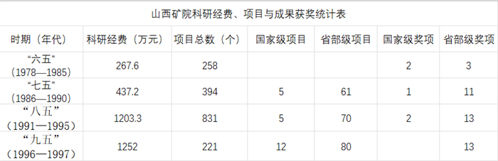 山西矿院科研经费、项目与成果获奖统计表
