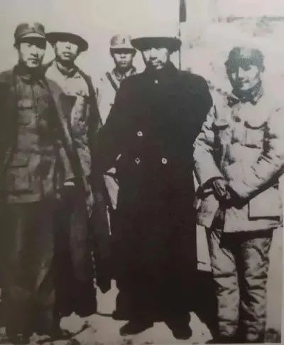 图为周恩来(右二)与邓小平 (右一)、彭雪枫(左一)等在太原合影