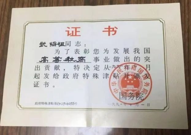 1991年10月,成为国务院在全国首批表彰的专家之一,享受政府特殊津贴