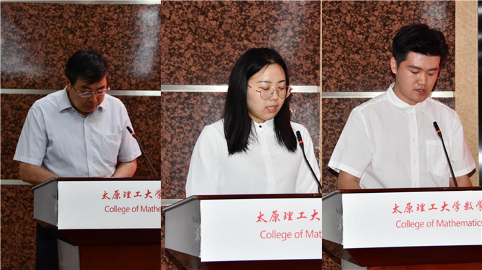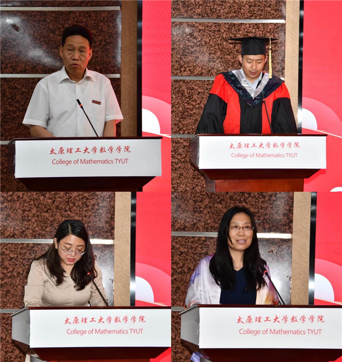 2022届研究生毕业生代表王雨饱含深情回忆了七年的求学生涯与难忘时光,并对学校、学院及各位老师的悉心教导和精心栽培表示衷心地感谢。他表示毕业的他们带走的不仅仅是专业知识,还有“不忘初心、牢记使命”的责任与担当,未来将要用行动和奋斗书写属于新时代理工大数学学子的华彩篇章。