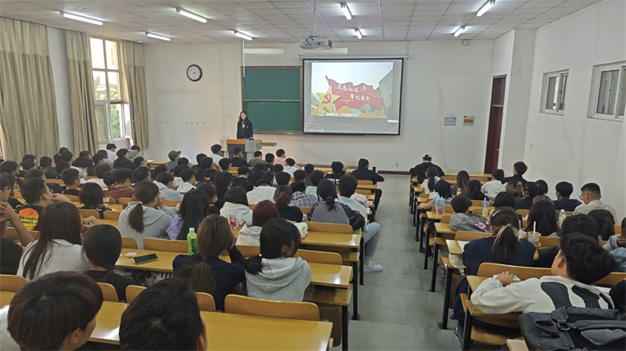 校团委校园文化部副部长许多多以《为中国式现代化挺膺担当》为题,以详实的案例、深入浅出地讲解了什么是中国式现代化、工业化与现代化有什么异同点,通过电影《摩登时代》举例,指出中国式现代化的优越性,论述了中国式现代化的五个特征,激励同学们踔厉奋发,以坚定的步伐在青春的征途上勇毅前行。
