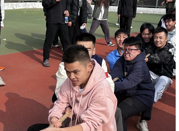 各个班级的代表人员组成16人的队伍(至少有1名女生),共计25支参赛队伍。随着一声哨响,拔河比赛正式拉开帷幕。参赛队员们个个斗志昂扬,紧握长绳,脚抵着脚,卯足了劲往后拉仿佛握住了整个世界的重量。在比赛过程中,各队队员齐心协力、奋勇拼搏,他们涨红了脸,咬紧牙关,不到最后一刻绝不放弃。场边的观众也被这热烈的气氛所感染,纷纷为自己支持的队伍呐喊助威,加油声、欢呼声此起彼伏,响彻整个赛场,斗志与激情燃尽了整个体育场。