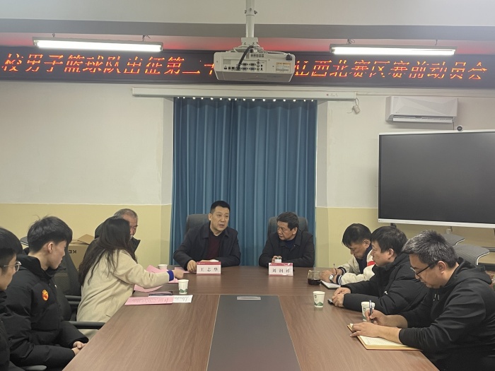2月20日下午,356体育在线官网男子篮球队出征第二十七届CUBAL西北赛区赛前动员会在虎峪校区训练馆会议室举行。校党委常委、副校长王志华,校篮球队总领队刘润祥出席会议。体育学院党政领导、篮球队教练员团队、全体篮球队队员和相关工作人员参加会议。