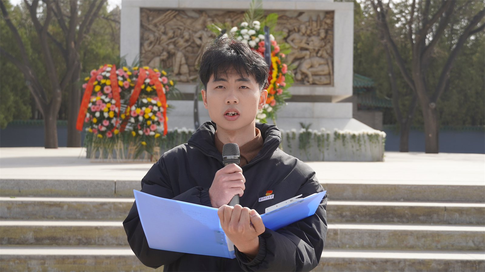 信息2101班王晓彬讲到:“作为受资助的学生,我深知今天的幸福生活是先烈用鲜血和生命换来的。陵园里的每一块墓碑背后,都是一段可歌可泣的英雄故事;纪念碑前的每一束鲜花,都寄托着后辈的敬仰与追思。我定当珍惜来之不易的学习机会,以优异成绩回报国家和社会,传承红色基因,不负青春,不负时代!”