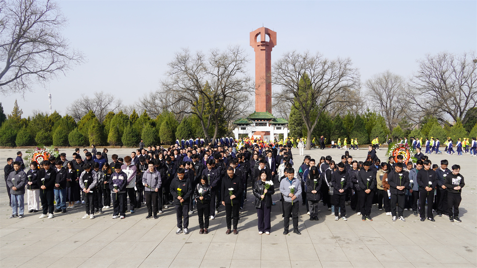 4月3日上午9时整,祭扫仪式在庄严肃穆的国歌声中正式开始。全体师生庄严肃立,齐声高唱中华人民共和国国歌。学生代表缓步上前向革命烈士纪念碑敬献花圈,学生工作部(研究生工作部)相关负责人庄重整理花圈绶带,全体师生鞠躬默哀,向革命先烈们致以崇高敬意和深切悼念。土木工程学院学生代表郭宸良宣读《新时代青年倡议书》,代表全体受助学子发出庄严承诺,传承红色基因,厚植家国情怀,砥砺奋发前行,受助思源感恩,以青春之我的奋斗姿态诠释“强国有我”的誓言,彰显新时代青年的使命担当,让青春在传承和奉献中绽放光芒。仪式最后,全体人员手持菊花缓步绕行瞻仰革命烈士纪念碑。