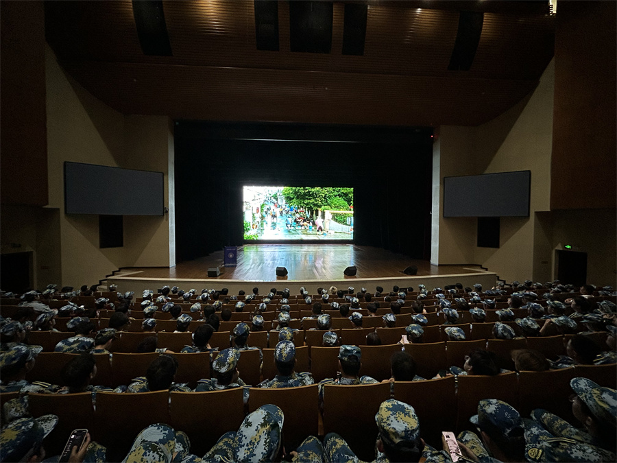9月18日、19日晚,356官网组织2025级新生分别在356官网明向校区明向会堂、虎峪校区同泽会堂同步开展 全民国防教育主题电影放映活动,两校区共计1600 余名新生代表现场观影,在光影之中感悟国防意义、汲取奋进力量。