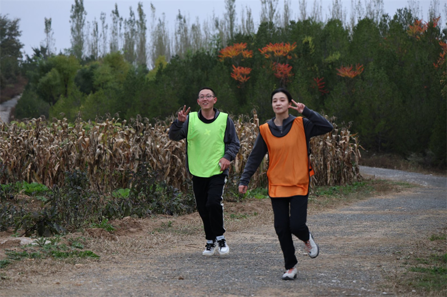 午后阳光柔和,清脆的发令枪响后,“迎新跑”开启,点燃了迎新活动高潮。5公里竞技赛道气氛紧张。选手们身体前倾,双臂摆动有力,跑鞋蹬地声急促整齐,如离弦之箭奔向终点。汗水刚渗出就被风吹散,他们眼神锁定前方,每步坚定迅猛。3公里健步走赛道则热闹轻松。选手们三三两两结伴,步伐轻快稳健,笑语不断。秋风凛冽,吹得梧桐叶沙沙响,却吹不散赛道上的青春炽热。无论是冲刺的竞技者,还是漫步的参与者,向前的身影挺拔昂扬,迈步充满力量,完美诠释“奔跑向未来”。