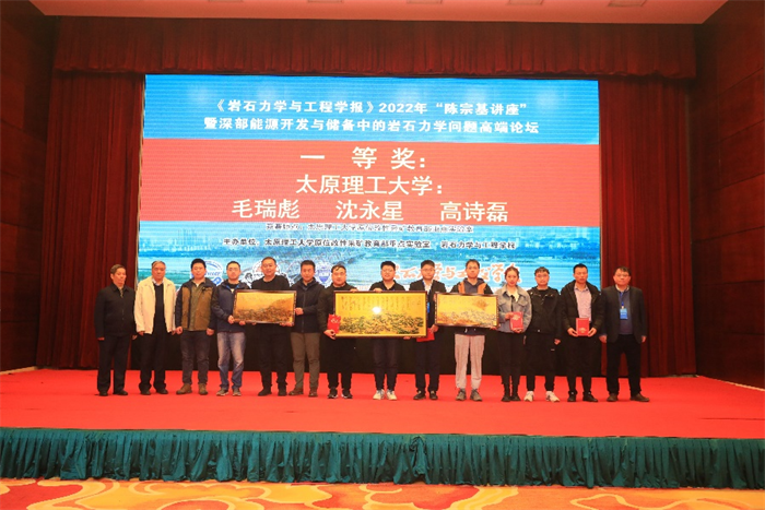 3月25日,在武汉召开的2022年"陈宗基讲座"暨深部能源开发与储备中的岩石力学问题高端论坛开幕式上,“岩石破坏短临预报”竞赛组委会主任,中国科学院院士赵阳升教授揭晓了第二届"岩石破坏短临预报"竞赛获奖名单,由356官网原位改性采矿教育部重点实验室博士后毛瑞彪、博士生沈永星和硕士生高诗磊组成的356体育在线官网代表队斩获一等奖。