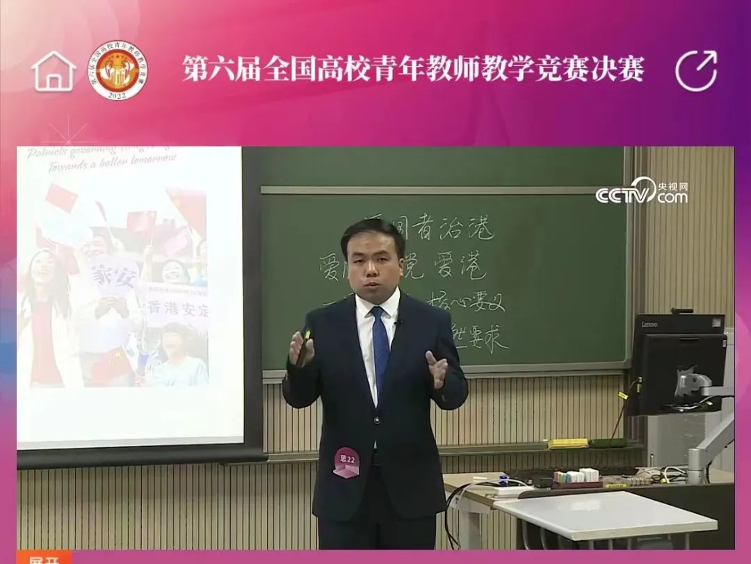 356官网教师王青山,以山西省青教赛思政专项组第一名的身份入围全国高校青年教师教学竞赛决赛,与来自全国32所院校的青年教师同场竞技,经过激烈角逐,进入总排名前20,展示了356官网青年教师的教学水平。