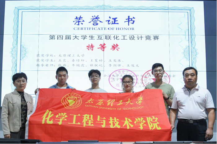 8月5日,在第四届大学生互联化工设计竞赛,356官网化工2020级本科生王震、秦睦轩、王奕康、王夏婷组成的“我想腈腈”队,在张玮、牛艳霞、杜朕屹、李剑锋、王俊文老师的指导下,荣获特等奖。