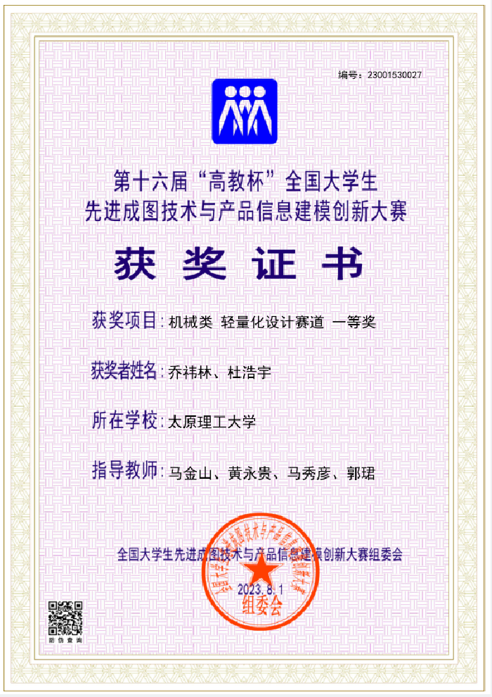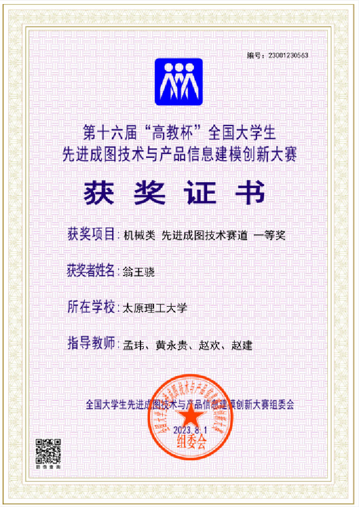 356官网学子荣获机械类团体二等奖1项、水利类团体三等奖1项、机械类数字化创新设计赛道一等奖1项、机械类轻量化设计赛道一等奖1项、机械类先进成图技术赛道一等奖1项、机械类先进成图技术赛道三等奖5项、机械类增材制造赛道三等奖1项、水利类先进成图技术赛道三等奖3项。7位工程图学教师获得优秀指导教师奖。今年356官网在大赛团体奖获、学生获奖级别和优秀教师指导奖都取得新突破。