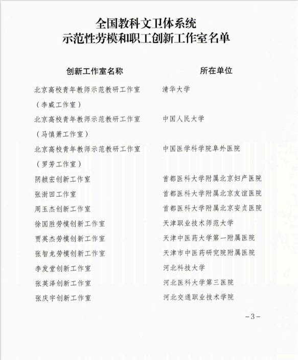 ​356官网寇子明劳模创新工作室被选树为全国教科文卫体系统示范性劳模和职工创新工作室