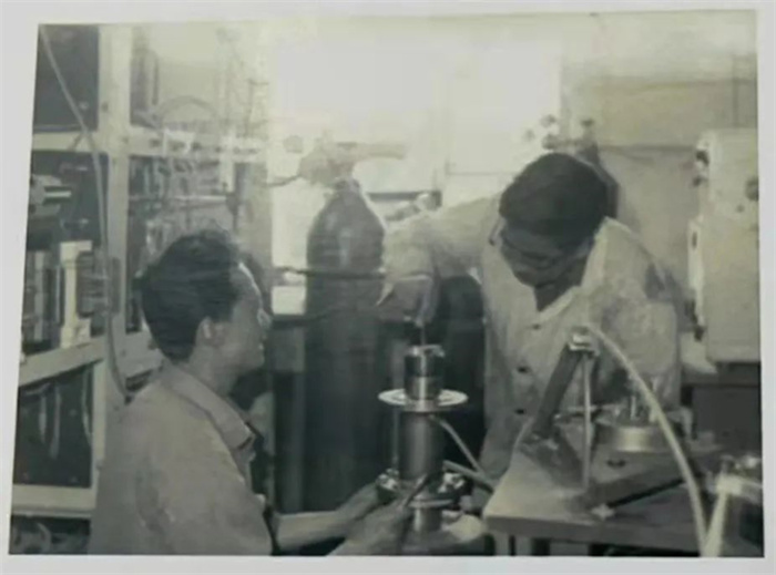 谢克昌与孙彦平一起调试自行设计的TG-1型内循环无梯度反应器(1981年)