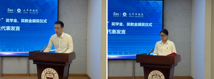获奖师生代表也分别发表感言,感谢太平洋建设集团一直以来对教育事业的关心和支持,感谢学院的肯定,表示在今后的学习工作中,会一如既往,再接再厉,把社会和学校的信任和鼓励化作学习工作的动力,努力学习、努力工作,为学校的建设发展贡献力量,用优异的学习成绩回报父母、回报母校、回报国家。